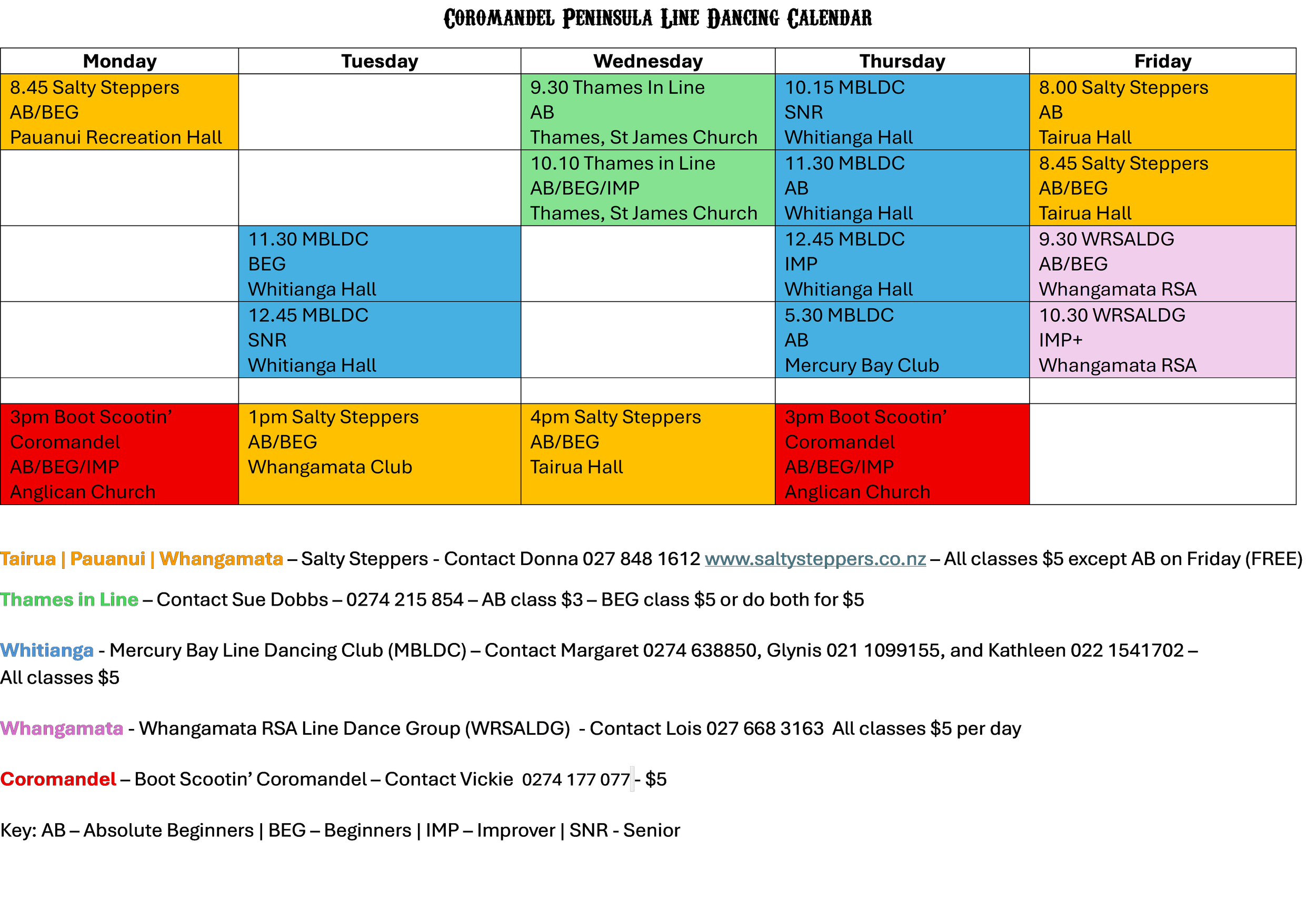 The Absolute Beginners class on Friday is FREE! It runs from 8am - 8.30am. In this class we go over some of the basic steps as well as learning 3 dances.